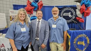 Massachusetts Highway Association President Roby Whitehouse, Assistant Director of Public Works in Yarmouth, left, Marlborough Mayor J. Christian Dumais, center, and Past President Scott Crisafulli are pictured at the 2024 New England Public Works Expo held in Marlborough.