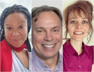Poet laureates Michelle “LaPoetica” Richardson, left, J.D. Scrimgeour, center, and Carolyn Zaikowski.