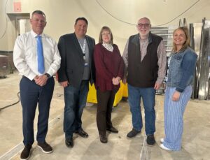 The Lenore’s Pantry Strategic Steering Committee gathers in its new pantry space during remodeling. Pictured, l-r, are North Attleborough Town Manager Michael Borg; Jim Downs, CEO of the Hockomock Area YMCA; Public Health Director Anne Marie Fleming; Town Councillor Daniel Donovan; and Caitlin Gibbs, Hockomock Area YMCA associate vice president of social action services. (Photo courtesy town of North Attleborough)
