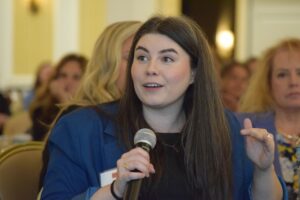 Braintree Stormwater Manager Hillary Waite participates in a discussion about empathetic leadership during the Women Leading Government meeting on Nov. 13 in Devens.